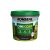 Ronseal fencelife one coat . Colours and protects rough sawn sheds and fences. Brush or spray on.